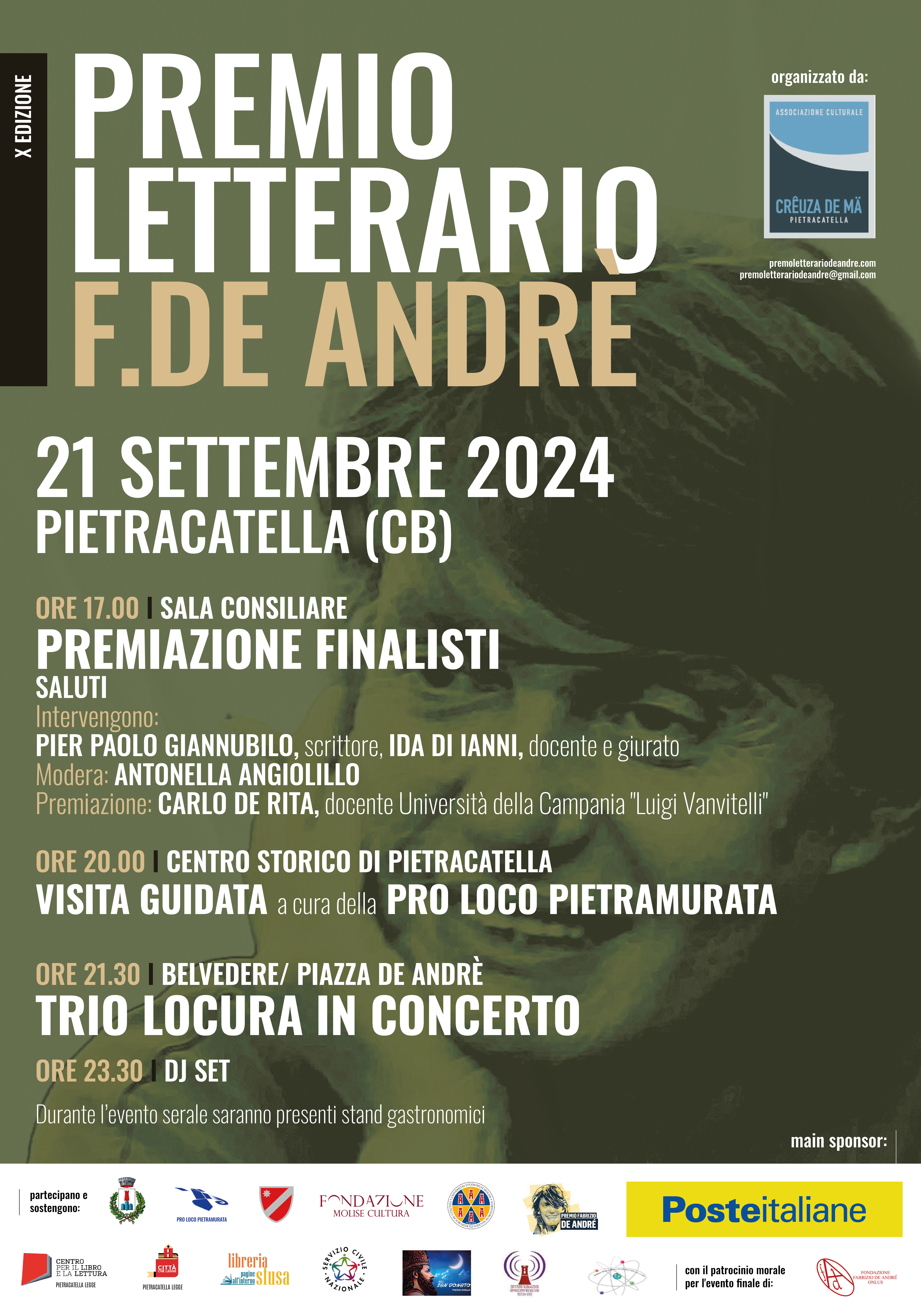 Il 21 settembre si terrà la premiazione della X edizione del Premio Letterario Nazionale Fabrizio De André!