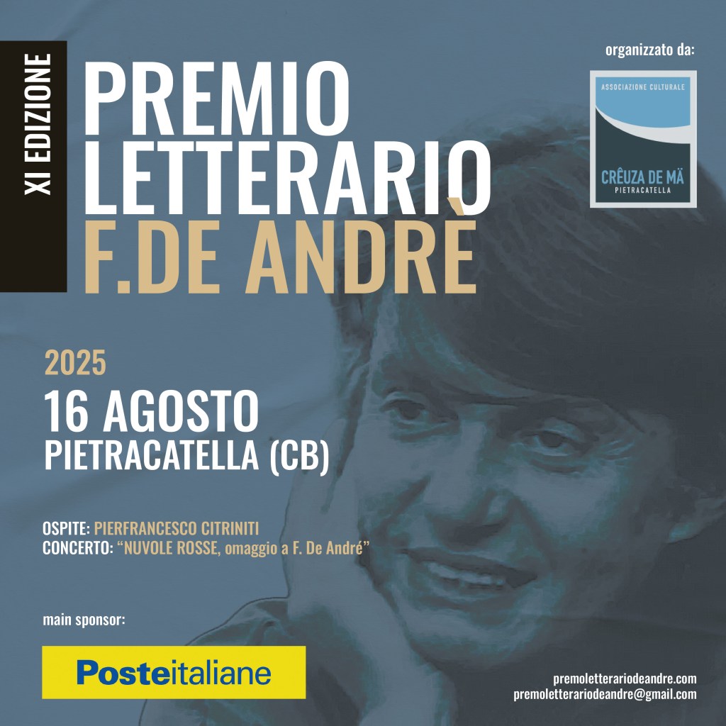 Il 19 agosto si terrà la premiazione della IX edizione del Premio Letterario Nazionale Fabrizio De André!