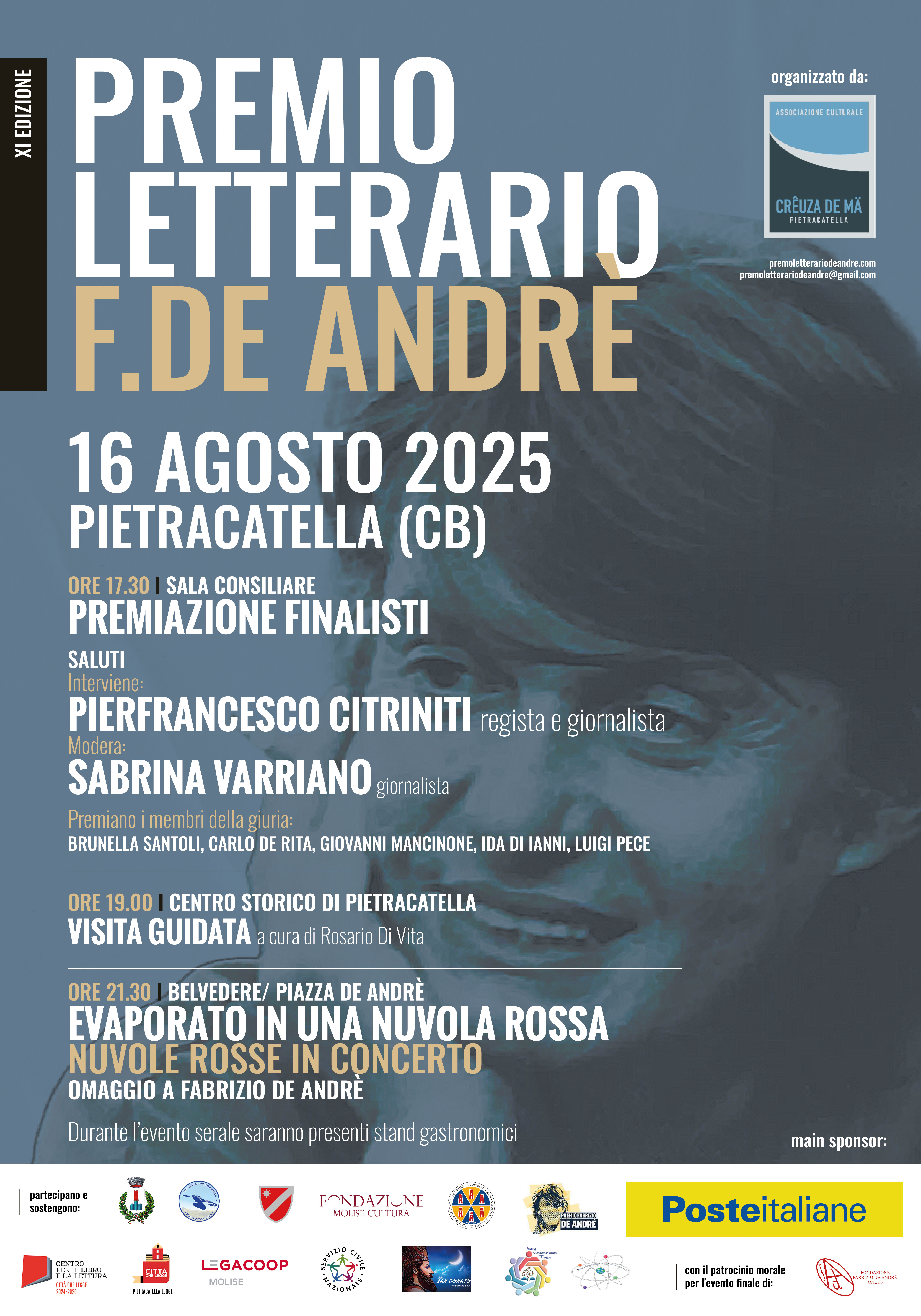 Di seguito locandine e programma della XI edizione del Premio Letterario Fabrizio De André.